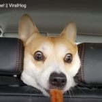 遊び疲れて 後ろの席で、寝ていたはずが!? さすがは ワンコ、ニオイには敏感♫ ...