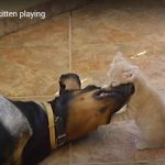 子ネコに無防備で、遊んでくれるワンコ。